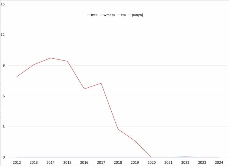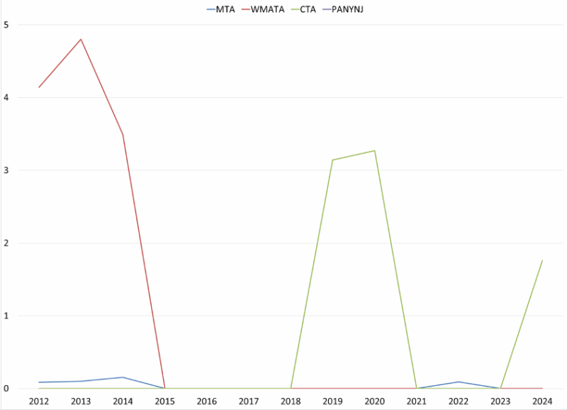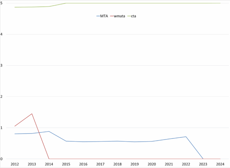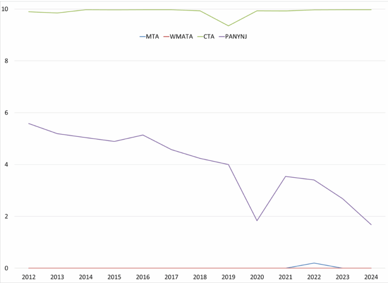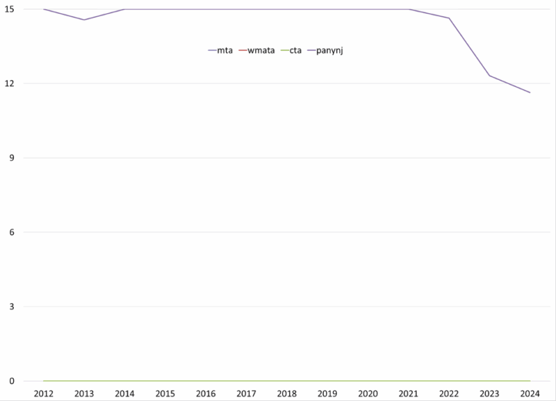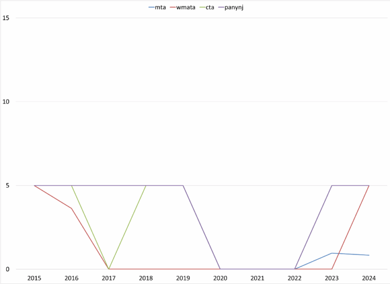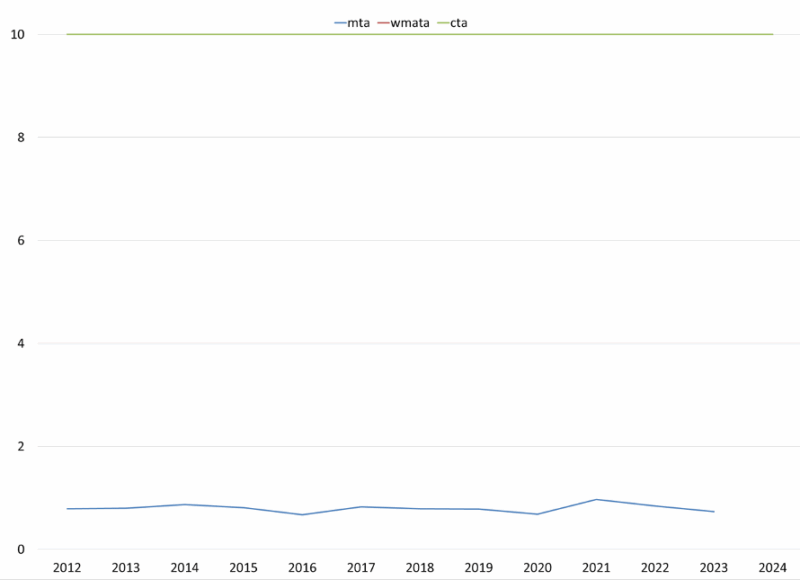 A challenging part of this research was that the Municipal Finance Database does not provide fiscal strength scores for component units or multistate entities (such as the MTA). Instead, I replicated the calculations used to calculate the fiscal strength scores by collecting data from the Annual Comprehensive Financial Reports (ACFRs) published by the MTA. In addition, I also considered MTA ridership and reliance on transfers when assessing fiscal strength as well.